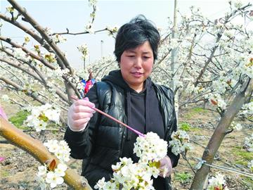 风和日暖四月天,在平度市东阁街道水石埠村,又迎来一年一度梨花盛开时节,千亩梨园弥漫着沁人心扉的芬芳。眼下,该村的种植户纷纷雇用周边村庄工人,趁着好节气忙着给怒放枝头的梨花授粉。
