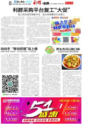 青岛晚报 利群·品牌 A08 2020-04-241 2020年04月24日 星期五