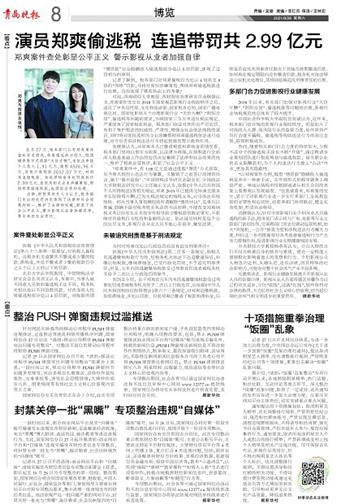 演员郑爽偷逃税 连追带罚共2.99亿元