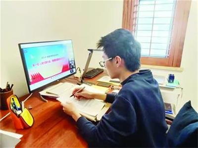 青岛二中学生在上网课。青大附中学生居家学习、上课。