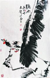 王文生先生是一位大写意花鸟画家,他笔下的花、鸟、鱼、虫,妙在“似与不似之间”,其笔墨、色彩、造型、构图等方面继承写意花鸟画之传统,并尝试追求在创作过程中体现出质朴灵动的美学特征和形散神聚笔简意繁的艺术境界。
