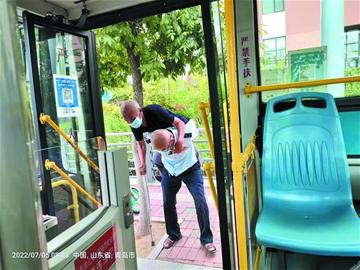 本报7月5日讯 “你们的驾驶员太暖心了,老人拄拐乘车不方便,他背上背下,必须给他点赞!”5日上午,公交城阳六分公司工作人员接连接到两名市民电话,表扬936路驾驶员爱心敬老的感人一幕。与此同时,另一位公交工作人员的邻居也通过微信发来一组照片,为暖心举措点赞。