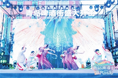 仪式上,啤酒街商会会长高杰宣读《诚信经营倡议书》并公布五星级诚信商家名单,让游客放心畅饮,消费者放心消费。主题情景舞剧《我们的嗨啤青春》开启了庆典的狂欢序幕,讲述了百年青啤与新时代年轻人的激情碰撞。大屏幕上裸眼3D视频震撼上演,现场灯光亮起、烟火点亮,庆典啤酒街正式开街。啤酒街开街后,登州路和台东三路上的特色巡游将定时开启,文创、时尚、美食、市集、小型音乐会等配套活动轮番上演,在享受啤酒美食之余,带领游客领略青岛时尚活力的风采。