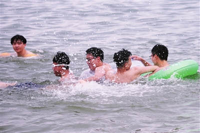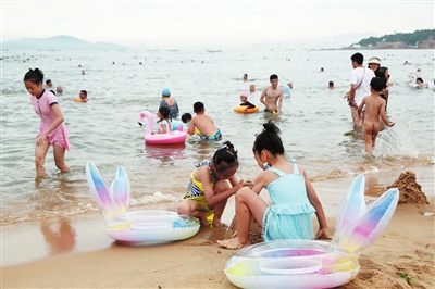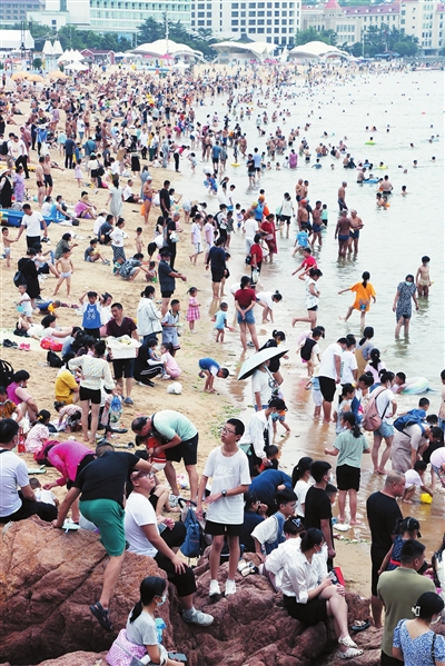 7月14日,岛城雨过天晴,市区最高气温虽然只有29℃左右,但空气湿度极大,大部分时间相对湿度都在80%以上。高温加高湿,将岛城推入“桑拿天”模式,游客及市民纷纷涌向海边寻找清凉。当日下午3时许,第一海水浴场人头攒动,游客扎堆,人们或海中畅游,或躺在沙滩享受清凉。