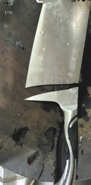 “相对来说,锋利度和耐用度越好的刀具,刀体的钢材和加工工艺会使得产品本身更突显钢材的硬度,而不能很好地兼顾韧性这个指标。基于中国消费者的使用习惯,使用菜刀刀体拍蒜的过程中,因为发力过大、拍击物本身硬度不同、刀体受力不均匀等诸多因素的影响,导致硬度较高的刀不能随形变彻底释放压强,刀体就有绷断的可能性。”相关负责人告诉记者。