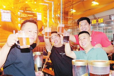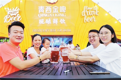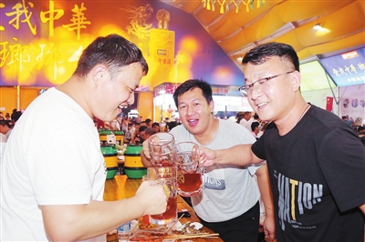 金沙滩啤酒城的夏天是最富青岛特色的夏天。蓝天、白云与宛若城堡一样的啤酒之城,吸引来自全国各地的你我。快听,城里每每都有悦耳的声音传出,那是海声、风声、歌声、笑声,还有“乒乒乓乓”酒杯碰撞的悦耳声音。当镜头定格举杯画面时,总有笑容感染着我们,传递着夏日啤酒城专属的那份豪爽、潇洒与惬意。举杯吧朋友,趁着夏日里最好的时光…… 观海新闻/青岛晚报 记者 于波 摄影 徐常青