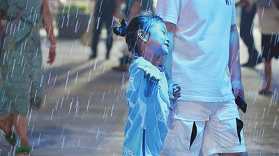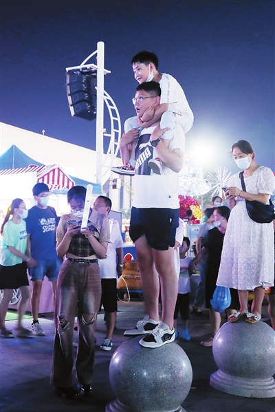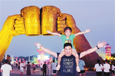 夏天有一种幸福,就叫坐在爸爸的肩膀上逛金沙滩啤酒城。