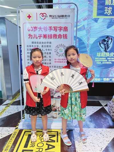 “我逛街路过这里,看到好多孩子穿着红马甲,还来跟我‘推销’扇子,听明白怎么回事后,就很想帮帮老人。”市民陈敬文扫描付款码购买了一把扇子。“我也有孩子,我特别能理解孩子生病家长的那种痛心。了解了大叔家的情况后,我就想一定要帮帮他。”市民姜媛购买了一把空白的扇子,请牛西平为自己写了一幅平安健康的扇面。