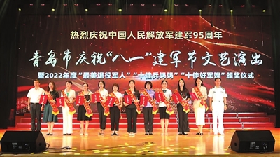 他们曾为保家卫国冲锋陷阵,如今建功新岗;她们以自己的无怨无悔支持儿子的强军重任,诠释母亲二字的含义;她们以柔弱又坚韧的双肩担起家庭重担,知难而不畏难……7月29日下午,青岛市庆“八一”文艺演出暨2022年度“最美退役军人”“十佳兵妈妈”“十佳好军嫂”颁奖仪式在市军休活动中心举行。仪式发布了2022年度“最美退役军人”“十佳兵妈妈”“十佳好军嫂”名单及先进事迹,30名先进个人获奖。