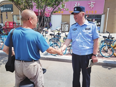 曾是一名军人的他,如今是走街串巷的社区民警,守护着辖区的安宁。