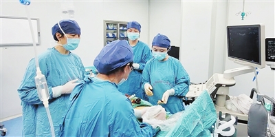 最终,经多方打听,他们辗转来到青岛妇女儿童医院胎儿医学中心门诊就医。胎儿医学中心主任张蔼接诊后,诊断胎儿患有下尿道梗阻。“下尿道梗阻是一种宫内进展型疾病,多数由于胎儿下尿道发育异常导致胎儿尿液集聚在体内无法排出,不仅会压迫胎儿肾脏,还会使孕妇子宫内羊水减少,最终继发胎儿肾功能不全和肺发育不良,使宝宝出生后失去根治甚至存活的机会。因此,必须尽早进行宫内干预治疗。”针对胎儿情况,产科中心、胎儿医学中心、妇产超声、小儿外科及麻醉等学科进行多次会诊、评估、讨论,专家们认为实施膀胱——羊膜腔引流术是最佳治疗方案。