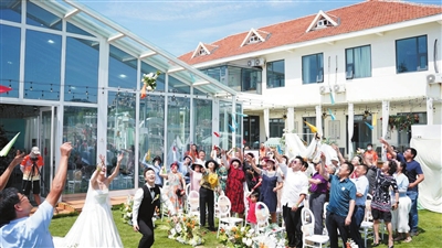 本报8月21日讯 新风尚与新行动,海誓与山盟,是崂山区送给新人的独特浪漫。21日上午,在崂山区会场湾圣罗尼克庄园新时代文明实践婚礼殿堂,一场简约的新时代文明实践婚礼仪式举行。