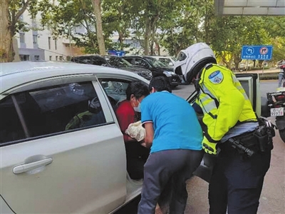 本报8月21日讯 20日傍晚5时20分许,市南交警铁骑队接到指挥中心指令,一名出生仅3天的婴儿突发高烧,家长开车带着孩子从城阳区赶往东部市立医院就医,需要交警开道护送。铁骑队员张旭东、辛顺顺迅速赶往福州南路江西路口与求助车辆会合,大队指挥室调度路况,保障车辆选择最快的道路全速前进,开辟绿色通道。铁骑队员驾驶着警用摩托车开启警灯,鸣响警笛,不断提醒沿途车辆避让。仅用两分钟便抵达东部市立医院。到达医院后,辅警张旭东让婴儿爸爸栾先生先去联系医生,自己怀抱婴儿一路跑到急救室,等待医生检查治疗。安顿好孩子后,两名铁骑队员刚要离开,栾先生突然下跪表示感谢,铁骑队员将他扶起。