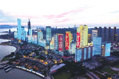 昨晚,浮山湾中秋主题灯光秀惊艳亮相。蓝色星空背景下,呈现出万家灯火的繁荣景象,一轮圆月从青岛中心处缓缓升起,再逐渐变换为月饼,祥云、玉兔、孔明灯等元素亦点缀其中。画面中配有“但愿人长久,千里共婵娟”“海上生明月,天涯共此时”等中秋诗词,营造出浓厚的节日氛围。 观海新闻/青报全媒体 记者 刘栋 摄影报道