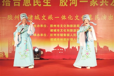 接地气冒热气的文化演出一直深受群众欢迎。2022年8月底,胶州市文旅局发起了“文化走亲”行动,铺集等镇的邻里艺术团先后走进高密市李家营、诸城市林家村举办专场演出。“文化走亲”等文旅活动的开展,加深了与胶河两岸三地百姓的邻里亲情,激活了基层文化惠民的一池春水。