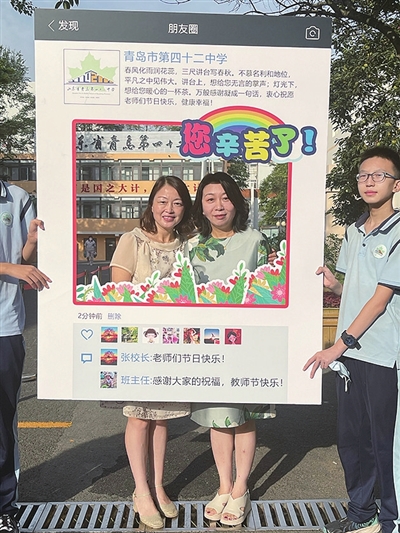 9月9日清晨,青岛第42中学的校领导和学生代表们,以简朴而隆重的形式共同庆祝教师节,向辛勤耕耘在教育一线的教师送上节日的祝福和诚挚的问候。早上6时30分,校领导们和学生代表手持贺卡和鲜花,整齐地站成两排,早早地守候在学校大门,迎接老师们的到来。“老师,祝您节日快乐!”“老师,您辛苦了,我们永远爱您!”学生代表们身穿干净整洁的校服,向各科老师们一一献上精心制作的贺卡,感谢老师的教诲、关怀和无私奉献。全体教师以“师德承诺书”的方式,向家长和社会作出郑重承诺:拒绝有偿补课和违规收受礼品礼金,弘扬师德、爱岗敬业、平等关爱每一个学生!全校教师参加了签名活动,并张贴到“师德承诺展板”上。为进一步加强师德师风建设,刘晓辉校长为师德启动月领誓,带领教师庄严宣誓,激励教师立足岗位,奋发进取,教书育人,这次活动,旨在提高教师爱岗敬业、教书育人的职业道德素养,传递教师师德师风正能量,展示教师爱岗敬业、无私奉献的精神风貌,弘扬当代教师教书育人、为人师表的职业情操,促进教育教学工作健康蓬勃发展。