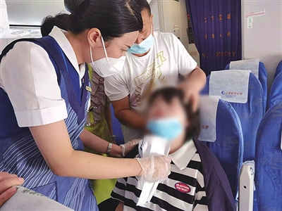本报9月19日讯 18日,山航SC4897由烟台前往广州的航班准时起飞。在万米高空的平飞阶段,后舱乘务员在进行餐水服务时发现22排有一名14岁女孩手捂腹部、面色痛苦。乘务员随即询问,发现女孩没有同行人,随后将其调换至27排空座休息,并向前舱报告。此时女孩已经面色苍白,意识模糊,无法语言交流,身体僵硬无法动弹。
