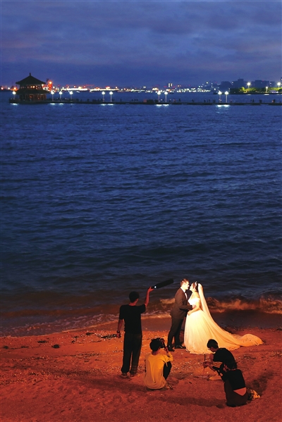 情侣趁国庆假期拍唯美婚纱照。徐常青 摄