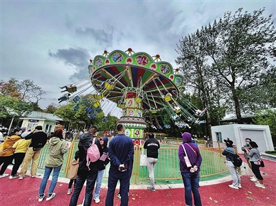 国庆期间,记者在现场探访时看到,园区入口处新增添了松鼠雕塑和喷泉景观,吸引了不少市民、游客拍照。园区内的多彩地坪增添几分跃动感,绿植葱茏,生机盎然,多个游乐项目前都排起了队,尽管受寒潮的影响岛城当天气温骤降,依然挡不住大家高涨的游玩热情。市民、游客纷纷穿梭于旋转木马、碰碰车、旋转飞椅等游乐设施中间,体验着新鲜感。“我小时候每到节假日就来这里玩,现在带着孩子来玩。”80后市民栾女士说,之前得知欢动世界停业的消息时还有些失落,9月得知这里会在国庆节重新营业的消息后,便决定要带孩子来玩一玩,虽然新园区跟原来比有所不同,但依然能重温童年的记忆。