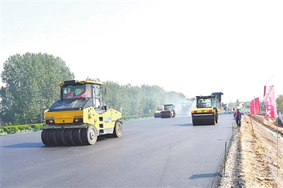 本报10月8日讯 8日,青兰高速双埠至河套段改扩建工程路面沥青摊铺试验段施工现场机器轰鸣、热火朝天。经过近3个小时的连续施工,沥青抗疲劳层试验段铺筑任务顺利完成,标志着该项目沥青路面施工正式启动。