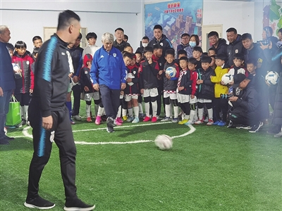 “那年,我19岁,我入选了国家队,这是我一生的光荣。”在足球场上,曲波用自己的经历鼓励小球员,一定要努力训练,享受足球的快乐。