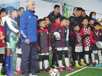 10月10日,2022年卡塔尔世界杯倒计时40天之际,卡塔尔世界杯形象大使、中国球迷的老朋友、曾带领中国男足在21年前冲出亚洲、征战世界杯的“神奇教练”米卢蒂诺维奇来到了青岛市李沧区刘家下河社区,与青岛追风少年足球俱乐部的小球员们亲密互动。看见俱乐部的带头人、弟子曲波扎根社区倾心于青少年足球事业,望着驰骋在绿茵场上的小球员们的身影,这个78岁的老人露出了笑容。