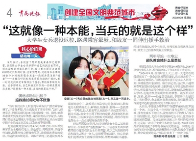 复学后要融入新的班集体,还要与学弟学妹们成为同伴,未知的挑战已经在路上。但李娜说自己做好了心理准备,并不担心。经过部队这个大熔炉的淬炼,与两年前相比,自己遇事多了沉稳少了急躁,思考问题时更全面,更有了提高站位的全局意识,这些都是在部队收获的宝贵财富,服役两年为她的青春镌刻下了最美好的记忆。 观海新闻/青岛晚报 记者 张琰