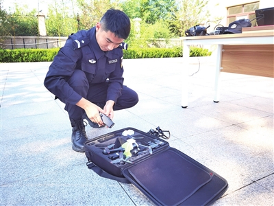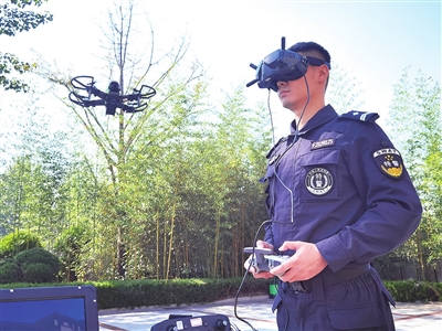 10月12日上午,在青岛市公安局特警支队警务航空大队驻地,警用无人机飞手们联合举行了一次警用无人机实战化练兵:警用无人机搭载喊话器在30米高空进行喊话,提醒社区居民严格遵守疫情防控规定;升空、盘旋、巡航、悬停、喊话,在飞手的熟练操控下,小小的无人机在模拟的复杂场景中尽情释放作战效能……这名操控无人机的飞手就是“四星辅警”获得者任显卓。