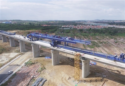 本报10月12日讯 11日,记者从中铁十局获悉,由该局承建的莱荣高铁4标共计531孔箱梁全部顺利架设完成。莱荣高铁起自莱西市,终至威海荣成市,其中莱西段全长7.1公里。建成后,与青荣城际铁路一南一北成环状运行,将有效补齐胶东半岛地区全国路网短板,助力实现半岛1小时、省内2小时、与北京和上海等中心城市4小时快速交通圈。