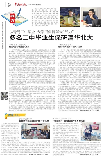 这几天,各高校保研推免结果陆续公布,青岛二中多位资深班主任——程志、陈泽叶、郝敬宏、高保卫等老师收到了来自学生的喜报,他们曾经带过的2019届毕业生保研推免人数再创新高。记者采访了解到,继当年高考12人考入清华北大后,经过三年的努力,青岛二中2019届毕业生再创辉煌,多人保送清华北大读研直博。6年前二中相识,6年后清华北大再聚,他们用蓬勃的进取心、澎湃的学习力,为母校“造就终身发展之生命主体”的育人理念作出最好的诠释。