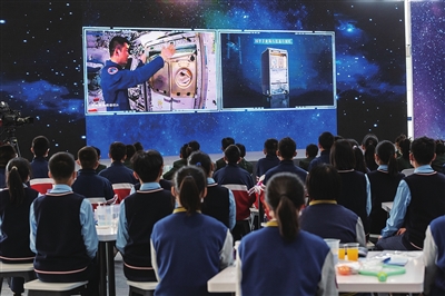 授课期间,航天员通过视频通话形式与地面课堂师生进行了实时互动交流,地面课堂专家也就有关科学问题进行认真解析。