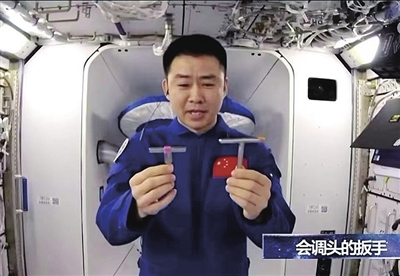 陈冬将空间站中的工具T字扳手在空中旋转后,扳手居然会自己翻身。时而头朝上,时而头朝下,反复不停。更为神奇的是,当他将两个扳手同时旋转时,它们展现出了完全不同的旋转姿态。