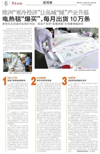 欧洲“寒冷经济”让岛城“暖”产业升温~~~家电巨头加速开拓海外市场 青岛产各种“取暖神器”外销量增幅明显