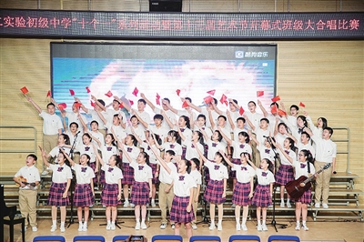 10月14日下午,青岛第二实验初级中学隆重举行第十三届艺术节开幕式暨班级大合唱比赛。钢琴、古筝、小提琴、二胡……阶梯教室内,2022级16个班的学生们用歌声表达对祖国的赞美与热爱。“我们要牢记嘱托,用手中的笔挥洒奋扬的篇章,用广博的知识为国家贡献力量!”学生们用歌声颂扬伟大祖国,表示将努力奋斗、充实自我,让希望的光火璀璨绵延。 观海新闻/青岛晚报 记者 于娜