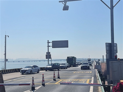19日上午7时许,记者驱车从海湾大桥站驶入胶州湾大桥,在收费口处,因为有车辆ETC设备安装不到位或感应不太灵敏等问题,等待了一会。驶上大桥,尤其是驶出匝道后,车距随即被拉开,在一眼望不到头的大桥上,并没有感觉车流量较此前有太大变化。开车行驶在大桥上,依旧是那么顺畅舒心。和记者有同样感觉的,还有每天都要驱车途经大桥的侯阔,他说:“开车上桥后并没有感觉车流量有太大变化,等到了收费口,感觉明显增多了。”