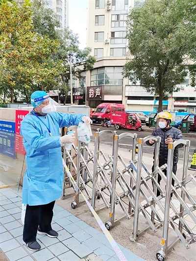 本报11月10日讯 面对岛城严峻的疫情防控形势,市交通局抗疫志愿者服务队中67名公路志愿者持续出击战“疫”一线,他们分别在大尧、银川七路、天福绿洲及魅力海岸大酒店等7个下沉社区和封控点,开展疫情防控志愿服务活动。这67人的团队中,57岁的于安存是年龄较大的志愿者之一。刚接到报名通知的他,第一时间主动请缨参加抗疫任务。
