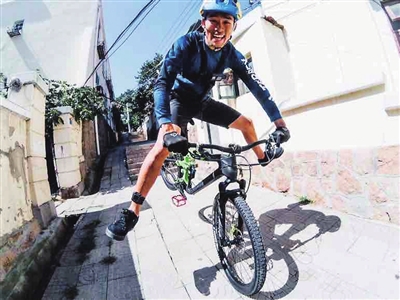 除了是一名攀爬自行车车手,张京坤还拥有山东省青年联合会常委、青岛市青年联合会委员以及青岛健康形象大使等多重社会身份,在他的社交媒体上可以看到,他通过骑行的方式向自己的粉丝们展示青岛各种各样的景点,从浮山到观象山,从网红墙到小鱼山,张京坤骑车穿越青岛的大街小巷,在他的镜头里,老城区的景点以另一种奇妙视角呈现,配合他接地气的“青普”,点赞往往破万。