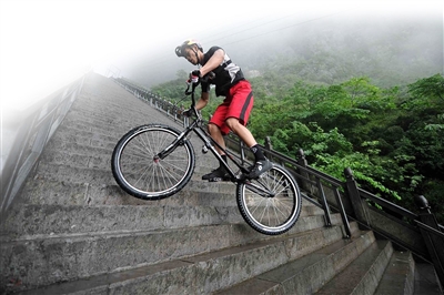 如果说这个阶段,自行车还只是一种代步工具,之后张京坤偶遇的攀爬自行车队,则是他真正走上这条路的开端。“我记得那是2003年前后,在马路上遇到了一队车手,他们是专业的攀爬自行车爱好者,来青岛做表演。” 他们在马路上骑着自行车,把车子抬起,只用后轮骑行,深深震撼到了张京坤。他去买车的车店和老板打听,得知这叫攀爬自行车,属于极限运动,“我也想试试!”张京坤当即下了决心。但当时父母并不同意给他买专业自行车,张京坤攒下零花钱,买了人生第一辆攀爬自行车。