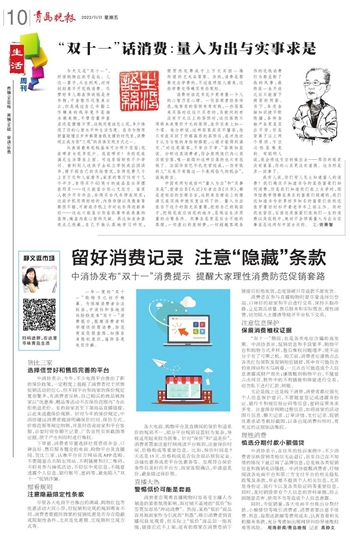 ~~~中消协发布“双十一”消费提示 提醒大家理性消费防范促销套路