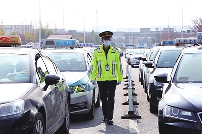 交通窗口人流量大,防疫形势严峻。每天,张仁君都要在火车北站东西两个广场来回巡查,看看防疫安排有没有遗漏、安全检查是否严格等。从东广场口到西广场口,步行需要15分钟左右时间,张仁君每天需要往返多个来回,微信步数每天轻松上万,始终“霸占”着朋友圈的榜首。“按照要求,出租车蓄客通道每两小时就要彻底消杀一次。”张仁君告诉记者,每名打车乘客,执法人员都要查看健康码并提醒佩戴口罩,并要求扫描场所码后才能乘车。没有列车抵达时,张仁君就会在等待的出租车队伍中,挨个检查场所码张贴情况,遇到有的车辆场所码标识有污渍,他会主动提醒对方前往汽车东站换领。