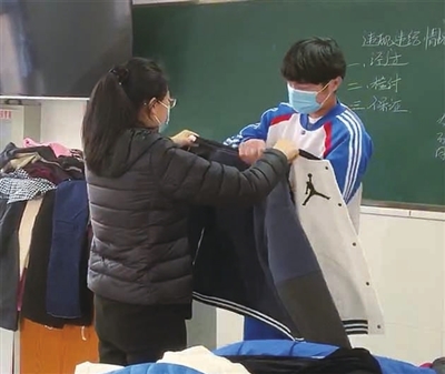 “这衣服真好看,很暖和。”“穿上老师送的衣服格外暖。”“谢谢老师。”……倡议发出的第二天,冬装储备不足的学生们就来到学生发展中心挑选到了经过统一消毒、分类整理的衣服。期间,学管老师切换为“商场导购”模式,帮学生们细心挑选合适的尺码,整理衣领,抚平皱褶,拽拉衣袖,一举一动都让学生感受到犹如家人的贴心。据统计,截至目前,老师们已经为学生捐助衣物200余件,大部分已经被学生领走,剩余的将妥善保管于学生发展中心,以备学生不时之需。