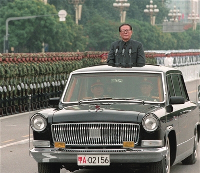 | 1999年10月1日,中华人民共和国成立50周年盛大庆典在北京天安门广场举行。江泽民同志检阅由人民解放军陆海空三军和人民武装警察部队、民兵预备役部队组成的地面方队。 |