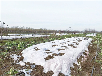 记者来到大寨村的农田里看到,一棵棵白菜非常饱满,一部分白菜散落在地上,几名村民正冒着严寒收获白菜。还有部分白菜堆在菜地里,担心白菜被冻伤,只好用大量土培好白菜根部,覆盖塑料薄膜,以确保地里的白菜不被冻伤。