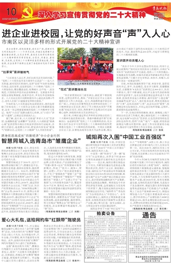 本报12月7日讯 日前,中国信息通信研究院在中国县域工业经济发展论坛上发布了2022年“中国工业百强区”榜单,城阳区再次入选。
