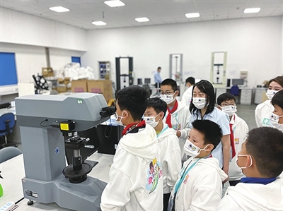 “大家可以来观测镜头下看一看,家电里一些压铸合金零件是什么样子。”在物理实验室,听了主管马秀梅的话后,小记者们站在如同放大版显微镜的维氏硬度计、布氏硬度计前跃跃欲试。他们井然有序分别凑近硬度计的观测镜头,看到了另一个微观世界。“我能看到‘小坑’。”“就像月球表面的月湖。”“这个坑是棱锥的样子。”……马秀梅为小记者的观察能力点赞,同时介绍,家电中的合金零件根据需要由不同的金属压铸而成,它们结构不同、质地不同,软硬度只有适宜才能让家电实现最佳运行效果,而硬度计正是用来测试它们能否“金刚不坏”的。