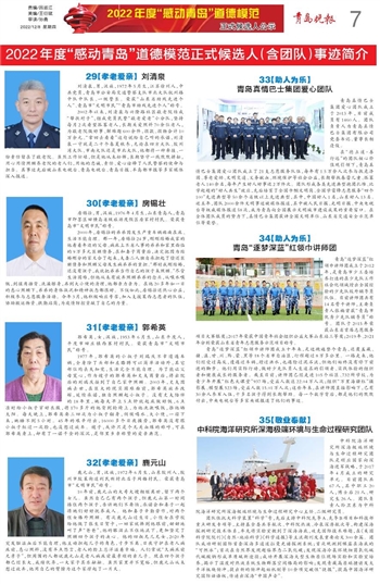 青岛晚报 2022年度“感动青岛”道德模范 A07 2022-12-081 2022年12月08日 星期四