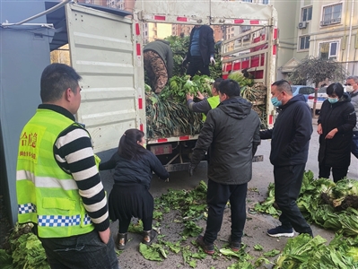 在地头忙碌了4个多小时,12时30分,一万多斤白菜和两千多斤大葱顺利装载到车上。14时许,志愿者团队第一站到达胶州市兰州东路的景尚名都小区,一棵棵白菜卸到居委会门口。居民收到通知,陆续前来取菜,有的拿着大袋子、有的推着小推车,10棵、20棵……不一会儿居民就把白菜搬运回家了。