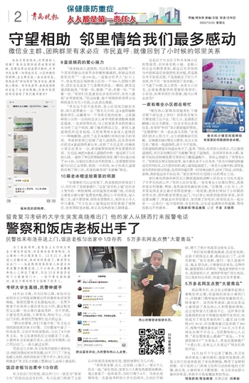 这些天青岛很冷,但周围的人很暖!每当出现防疫药品暂时短缺、急需抗原试剂盒等问题时,许多市民会第一时间在社区、小区的微信团购群、业主群里发一条求助信息,很快会有“神仙邻居”挺身而出、提供热心帮助。有市民直呼:虽然疫情暂时打乱了生活的阵脚,但意外收获的邻里情给了我们最多感动!