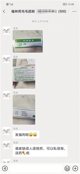 “谁家缺成人退烧药,可以私信我,送药啦”“一个邻居贡献出自家多余的解热镇痛药,有缺这类药的私信我”“一盒100包,一盒能分好多人”21日上午,青岛李沧区福林苑小区的一个500人团购大群里,团长毛毛连发了几条微信消息,一瞬间,群里迅速活跃起来。“我要一份,谢谢。”“亲,我要一份。”“我要一份。”邻居们在迅速表达诉求的同时,也有人提到“必须要给钱。”经过商量,每个领到药的邻居主动转给团长毛毛1毛钱,以此表达谢意。