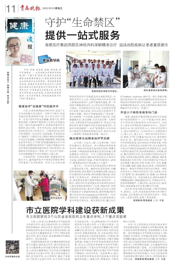 青岛晚报健康波报A11守护“生命禁区” 提供一站式服务 2022-12-23 2 2022年12月23日 星期五